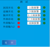 上電后系統(tǒng)對(duì)重錘系統(tǒng)進(jìn)行檢測(cè),無(wú)故障后進(jìn)入主界面。如果重錘有故障,下方會(huì)出現(xiàn)手動(dòng)進(jìn)入按鍵。按下后進(jìn)入《端口測(cè)試》界面,測(cè)試輸入輸出端口。