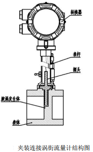 法蘭卡裝型渦街流量計(jì)的基本結(jié)構(gòu)主要是由表體、探頭、旋渦發(fā)生體、表?xiàng)U和轉(zhuǎn)換器等組成。