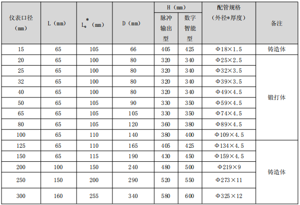 儀表口徑(mm) | 15、20、25、32、40、50、65、80、100、125、150、200、250、300 |